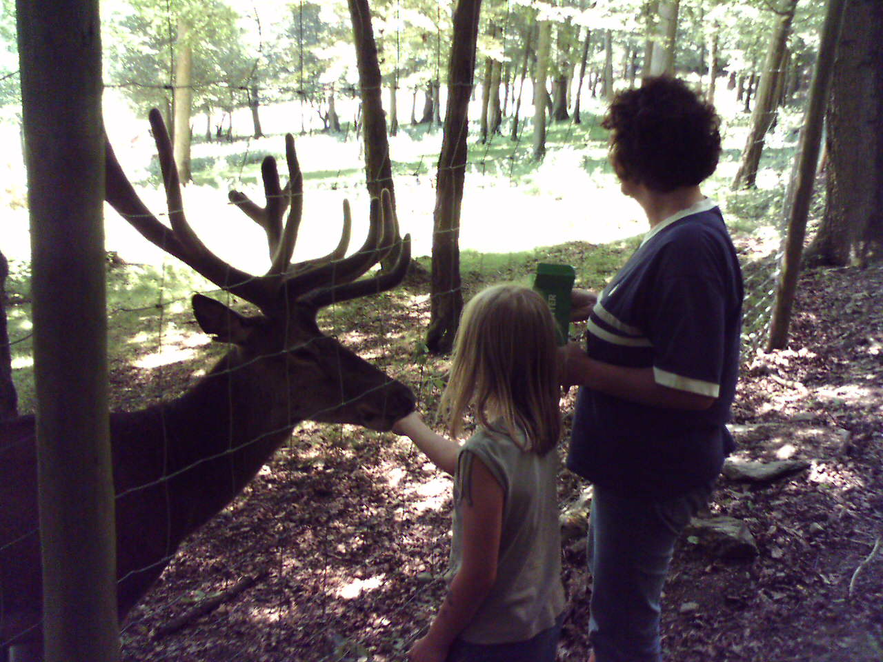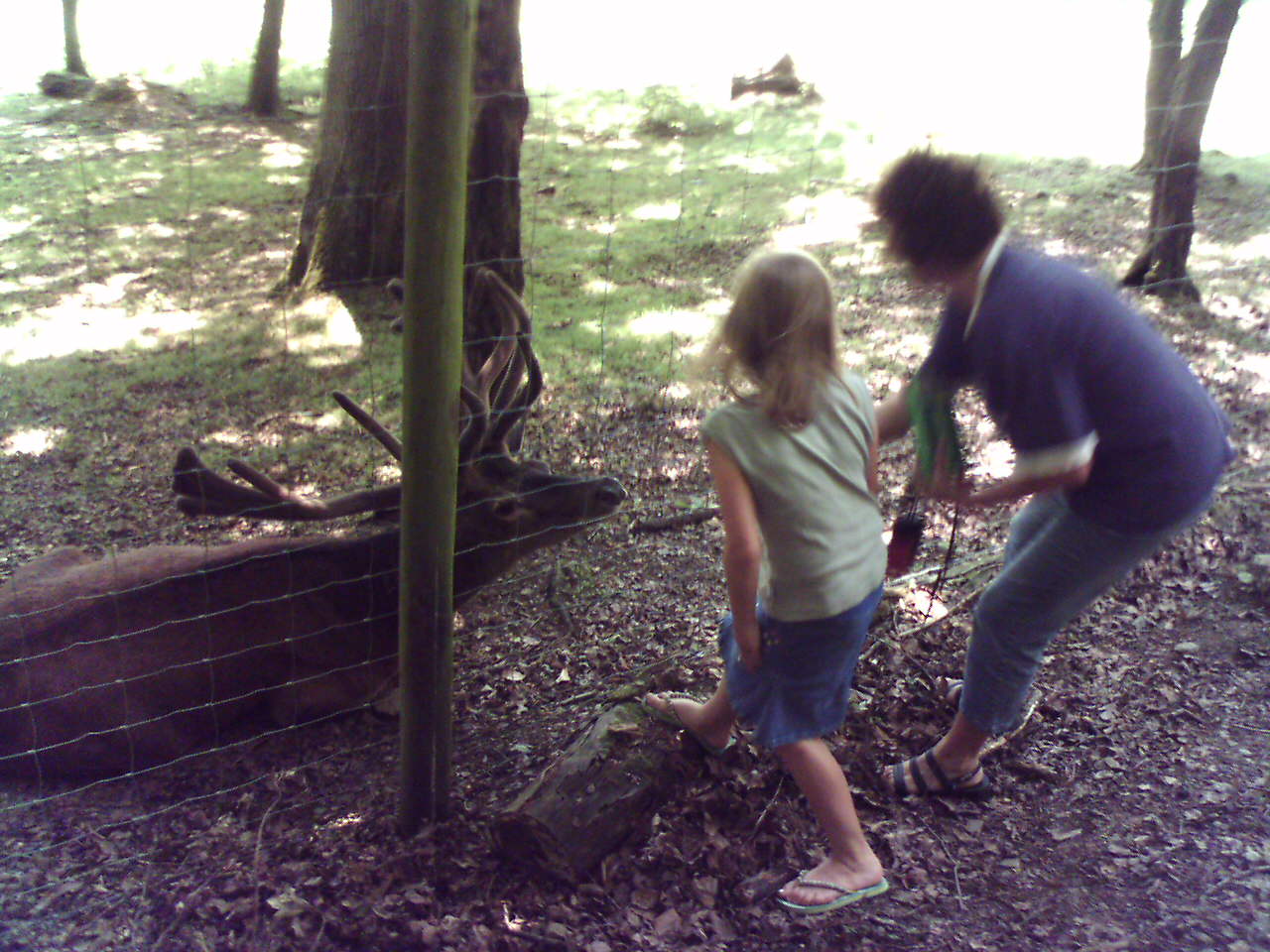 Am 02. Juli 2006 haben wir uns bei schönstem Wetter entschlossen, zum Wildpark im Westerwald (in Gackenbach) zu fahren. Er liegt im Gelbachtal, eine Verbindung zwischen dem Lahntal und Montabaur im Westerwald. Nach einer ca. einstündigen Fahrt waren wir am Ziel. Wir entschlossen uns dort, den großen Rundweg zu nehmen. Der war so groß, daß man wohl zunächst an allen Tieren und Attraktionen vorbeiläuft. Man erhält aber einen schönen Blick auf den weitläufigen Westerwald. Die nächsten Bilder vermitteln diesen imposanten Eindruck. Selena wirkt auf einem Bild richtig winzig.